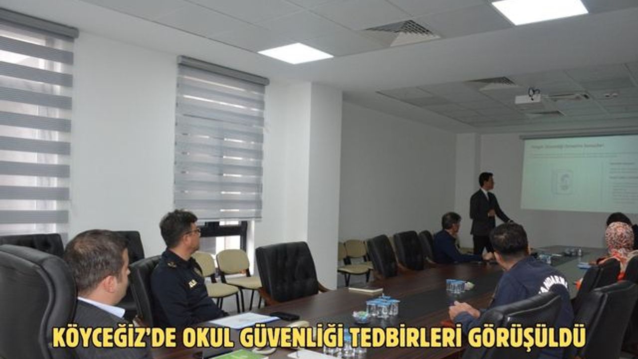 "Okul Güvenliği" toplantısına Köyceğiz Kaymakamı Mert Kumcu başkanlığında, Köyceğiz İlçe Milli Eğitim Müdürü Taner Şen, İlçe Emniyet Müdürlüğü, İlçe Jandarma Komutanlığı ve ilgili kurum birimleri katıldı.