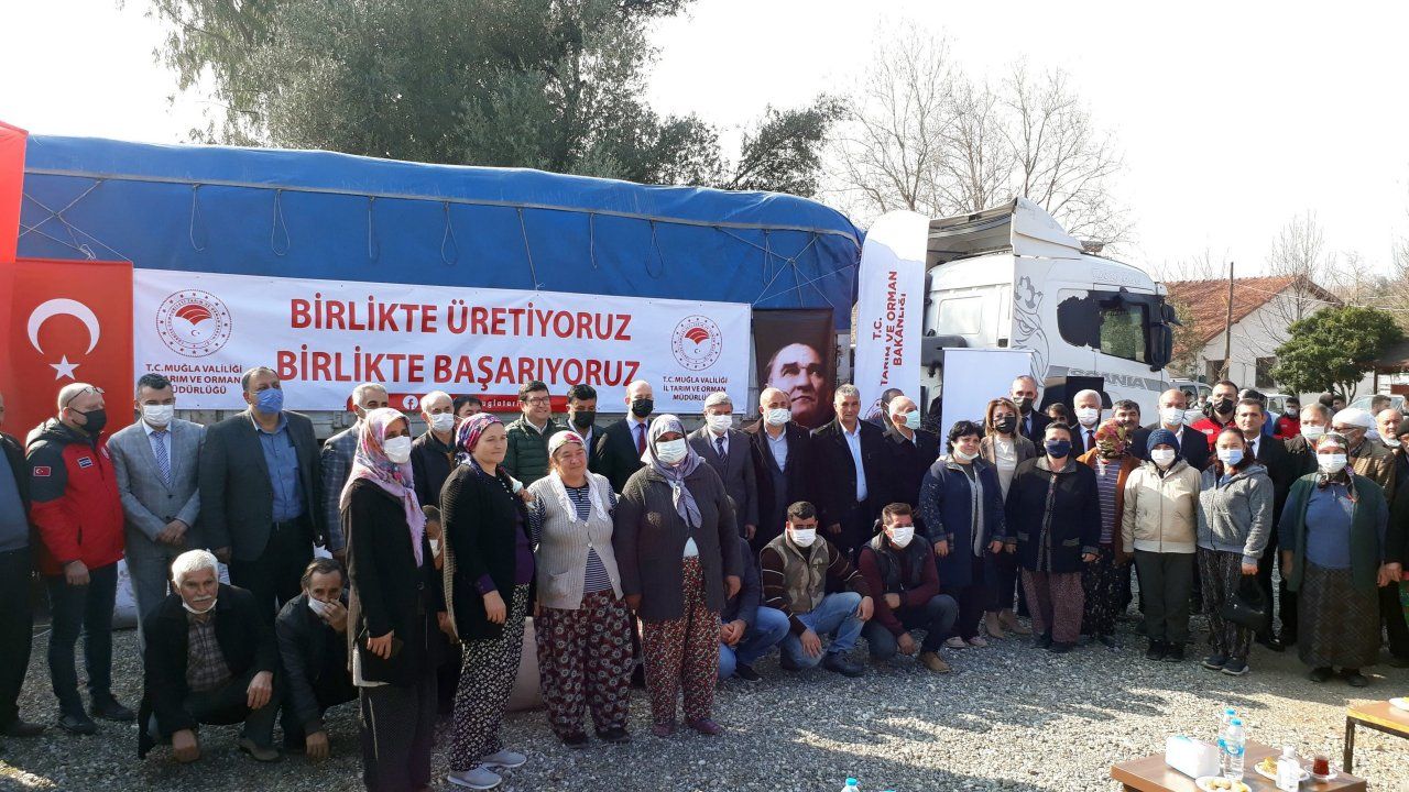 Köyceğiz Orman deposu alanında yapılan dağıtım törenine Köyceğiz Kaymakamı Mustafa Maslak, Köyceğiz Belediye Başkanı Kamil Ceylan, Dalaman Belediye Başkanı Muhammet Karakuş ve ziraat odası başkanları ve üreticiler de katıldı.