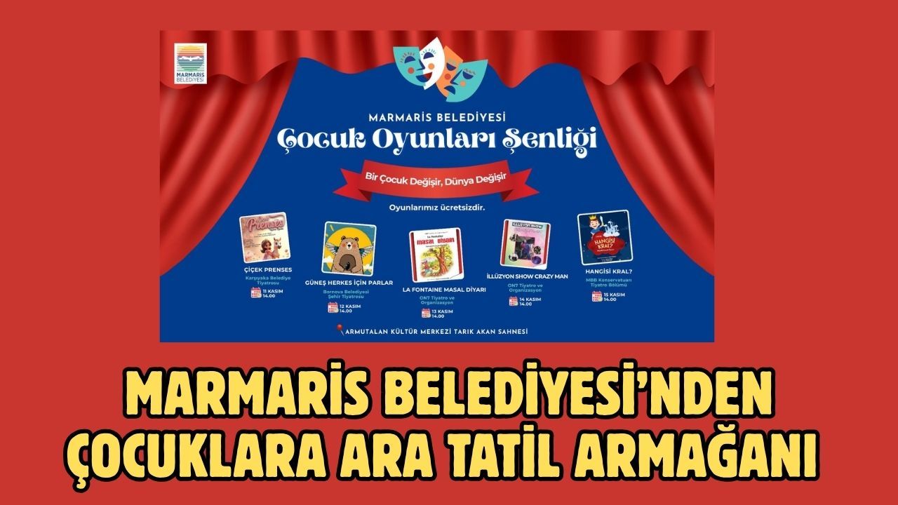 Marmaris Belediyesi, ara tatil döneminde çocukları tiyatronun büyülü dünyasıyla bir araya getiriyor. “Bir Çocuk Değişir, Dünya Değişir” sloganıyla hazırlanan şenlik, 11–15 Kasım tarihleri arasında Armutalan Kültür Merkezi Tarık Akan Sahnesi’nde minik izleyicilerle buluşacak. Farklı belediye tiyatroları ve sanat ekiplerinin sahneleyeceği birbirinden renkli oyunlar, çocuklara hem eğlenceli hem de öğretici bir ara tatil sunacak.