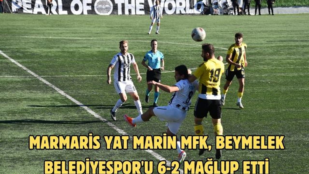 Marmaris Yat Marin MFK, Beymelek Belediyespor'un 22. dakikadaki golüne karşılık, 8, 45+1 ve 45+9'uncu dakikalarındaki gollerle ilk yarıyı 3-1 önde kapattı.