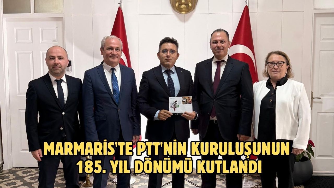 PTT'nin kuruluş yıl dönümü dolayısıyla Muğla PTT Başmüdürü Kadir Tomrukçu, Başmüdür Yardımcısı Hülaki Demirok ve İlçe Müdürü Semra Keleş, Marmaris Kaymakamı Nurullah Kaya'yı makamında ziyaret etti.