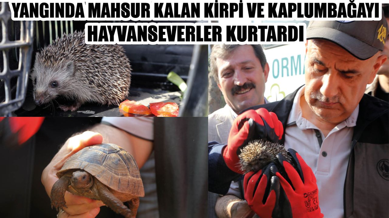 Bu kapsamda Bördübet Yedialar mevkisinde yangında mahsur kalan kirpi ve kaplumbağayı görerek kurtaran HAYBAP Ferdinand Hayvanlara ve Doğaya Ahbap Derneği üyeleri su ve yiyecek verdikleri hayvanları kafeslerle Değirmenyanı'ndaki Yangın Komuta Merkezine getirdi.