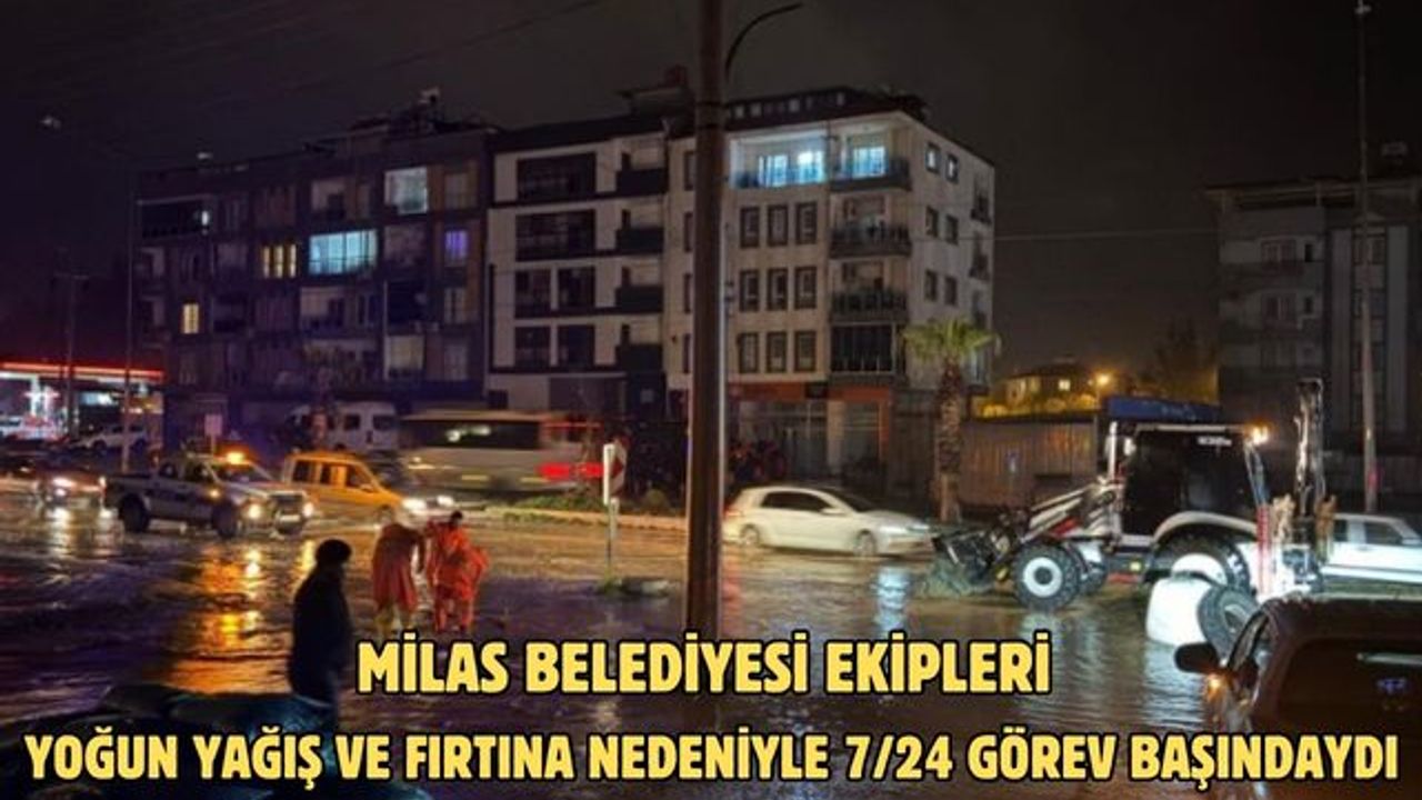 Çalışmalar hakkında sosyal medya hesaplarından paylaşım yapan Milas Belediye Başkanı Fevzi Topuz, “Belediye ekiplerimiz ve iş makinelerimiz, ilçemizde etkisini sürdüren yoğun yağış ve fırtına nedeniyle 7/24 teyakkuz halindedir. Vatandaşlarımızın can ve mal güvenliğini sağlamak amacıyla sahada gerekli tüm önlemler alınmakta, olası olumsuzluklara karşı müdahale çalışmaları aralıksız devam etmektedir” dedi.
