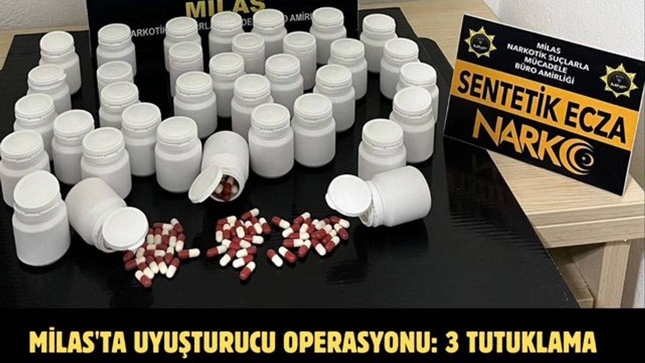 Muğla İl Emniyet Müdürlüğü Narkotik Suçlarla Mücadele Şube Müdürlüğü ekipleri uyuşturucu madde ticaretinin önlenmesine yönelik yürütülen çalışmalar kapsamında Milas ilçesinde operasyon gerçekleştirdi. Yapılan çalışmalarda, kente uyuşturucu madde getireceği değerlendirilen araç ve şüpheliler üzerinde yapılan aramalarda 1.814 adet sentetik ecza ele geçirildi.