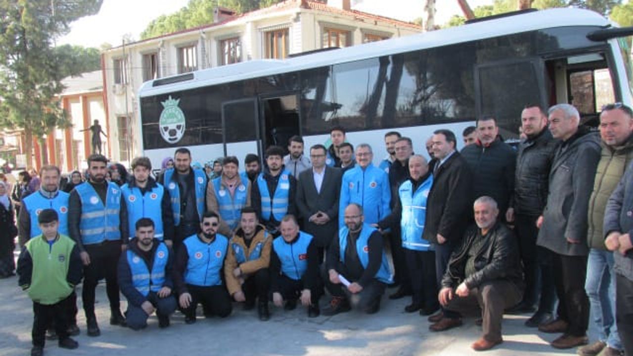 Konuşmaların ardından İl Müftüsü Yaşar Çapçı’nın duasının ardından, Belediye Başkanı Mustafa Toksöz’ün temin ettiği otobüs ile 26 kişilik ekip deprem bölgesine uğurlandı.