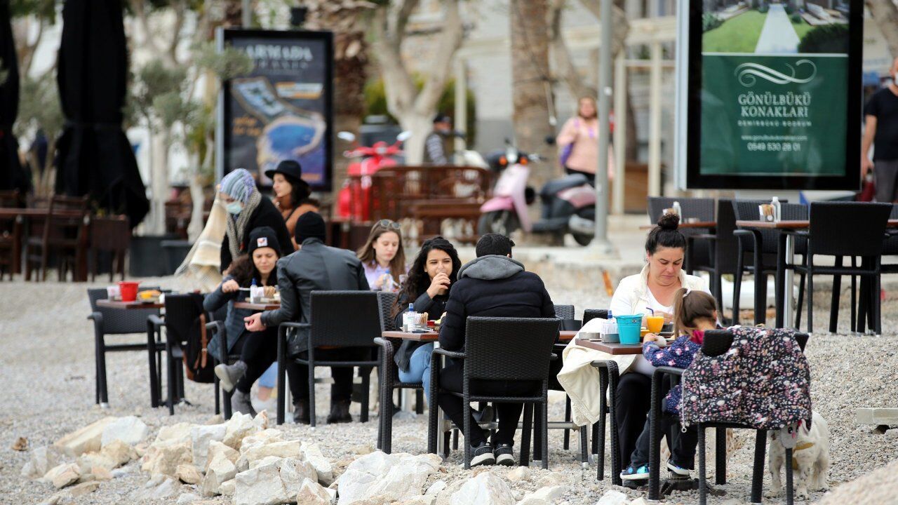 Hava sıcaklığının 18 derece ölçüldüğü Bodrum'da da vatandaşlar sahildeki işletmelerde yoğunluk oluşturdu.