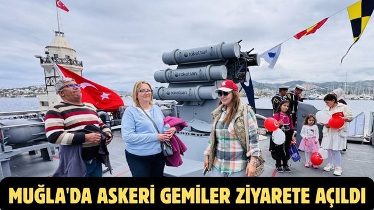 Marmaris Limanı'nda Kılıç sınıfı hücumbot TCG Tufan gemisini aileler çocuklarıyla ziyaret etti.