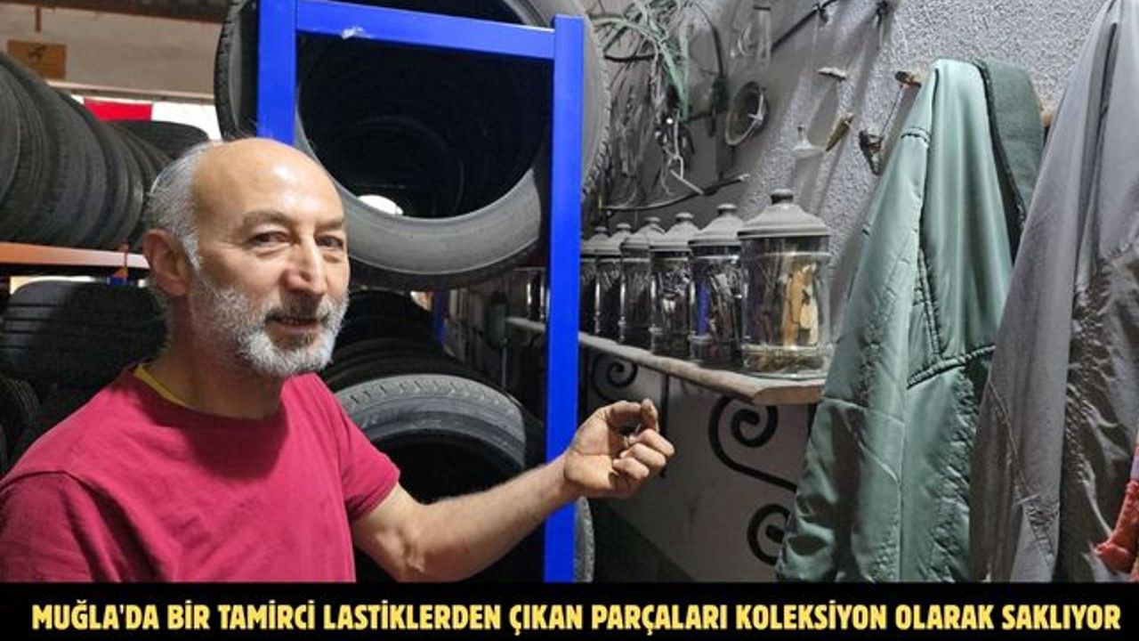 Tamirci, lastiklerden çıkan çivi, vida, neşter, dikenli tel, olta kancası, inşaat demiri, tel fırça, saat pimi, tükenmez kalem ucu, nal çivileri, toka ve mandal yayları, enjeksiyon iğnesi, çivili ayakkabı topuğu ve domuz dişi gibi binlerce parçayı biriktirdi.