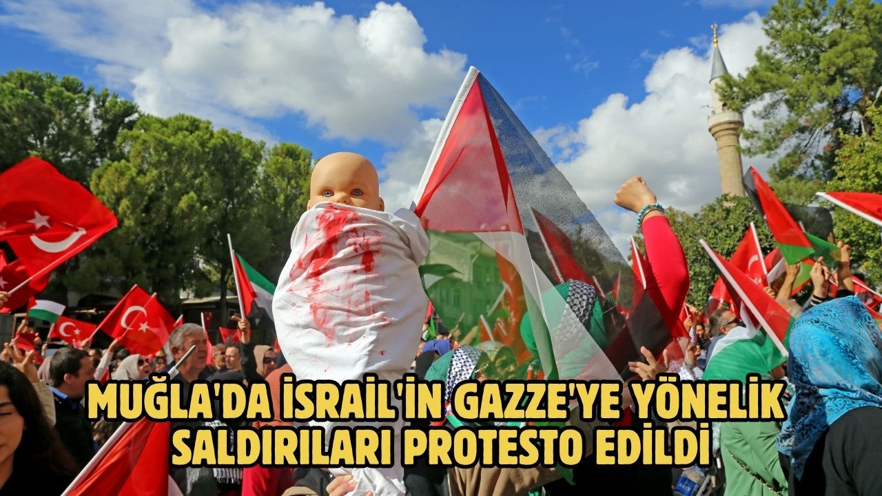 Menteşe ilçesindeki Akyol Pazar Yeri'nde Filistin'e destek amacıyla bir araya gelen vatandaşlar, İsrail'in Gazze'ye ve Sumud Filosu'na yönelik saldırılarını protesto etti.