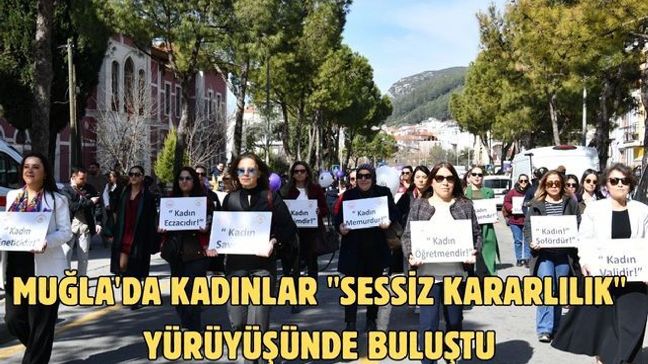 Muğla Şiddet Önleme ve İzleme Merkezi koordinasyonunda düzenlenen etkinlikte kamuda görev yapan kadın belediye başkanı, hâkim, savcı, avukat, doktor, öğretmen ve idareciler meslek kıyafetleriyle yürüyüşe katıldı.