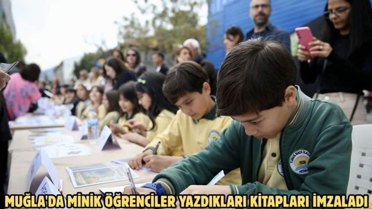 Yunus Nadi İlkokulu'nda yürütülen projede, öğrenciler, öğretmenleri ile yazarlar Şahsene Camız ve İclal Nur'un desteğiyle hazırladıkları eserlerini, Fethiye Belediyesi Özer Olgun Kültür Merkezi önünde düzenlenen programda imzaladı.