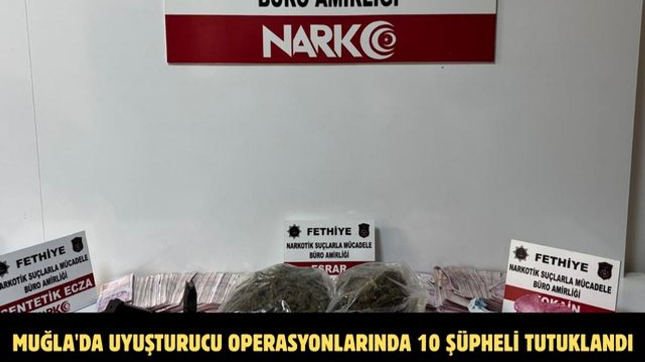 Muğla İl Emniyet Müdürlüğü Narkotik Suçlarla Mücadele Şube Müdürlüğü ekiplerince 24-30 Kasım tarihleri arasında uyuşturucu tacirlerine yönelik 38 ayrı operasyon düzenlendi. Operasyonlarda 843 gram esrar, 166 gram skunk, 153 gram kokain, 127 sentetik ecza, 68 gram bonzai, ruhsatsız 1 tabanca, 3 hassas terazi, suçtan elde edildiği değerlendirilen 208 bin 255 TL nakit para ele geçirildi. 34 şüpheliye uyuşturucu madde kullanmak ve bulundurmaktan işlem yapıldı. 10 şüpheli çıkarıldıkları mahkemece tutuklandı.