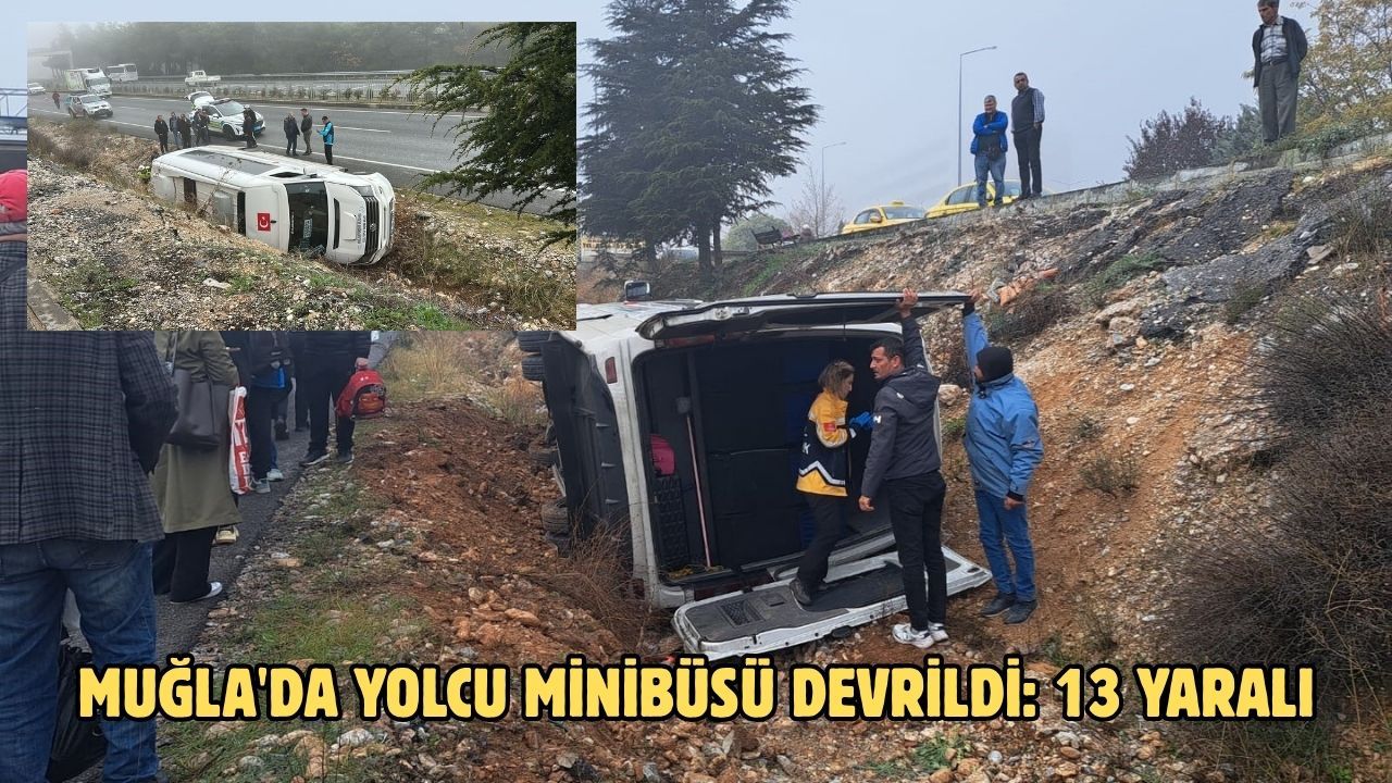 Menteşe ilçesinde, Marmaris yolu üzerindeki Muğla Eğitim ve Araştırma Hastanesi karşısında meydana gelen kazada, 48 HO 7529 plakalı yolcu minibüsü sürücüsünün direksiyon hakimiyetini kaybetmesi üzerine şarampole devrildi. Kaza ihbarı üzerine olay yerine sağlık, polis itfaiye ve UMKE ekipleri sevk edildi. Olay yerine gelen ekipler hemen kazazedelere müdahalede bulundu. Araçta sıkışan bir yolcu UMKE ve itfaiye ekipleri tarafından kurtarıldı. Kazada hafif şekilde yaralanan 13 kişi ayakta tedavi edildikten sonra tedbir amaçlı hastaneye kaldırıldı.