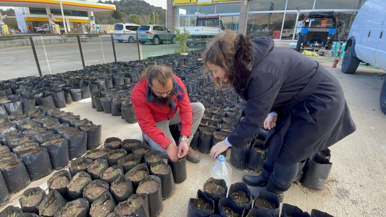 "Çam fıstıkları, keçi boynuzu, meşe ve akasya gibi fidanlar yetiştiriyoruz. Hedefimiz 10 bin fidandı ancak atölyemizin önüne 2 bin 500 adet sığdırabildik. Alan yetersiz kalmaya başladı. Bu işin sonu yok ama çok mutluyuz. Bize çok büyük destek veren, hatta toprak, çam fıstığı gönderen arkadaşlarımız oldu. Halktan çok uygun fiyata fıstık çamı edindik. Orman bölge şefleriyle nasıl dikileceği konusunda irtibat halindeyiz. Bu fidanlardan arazilerine dikmek isteyenlere de veriyoruz. Daha önce hiç fidan yetiştirmemiştim. Birden fidan işine kalkıştık. Tohum topları da hazırladık, bunları da bölgelere atacağız."