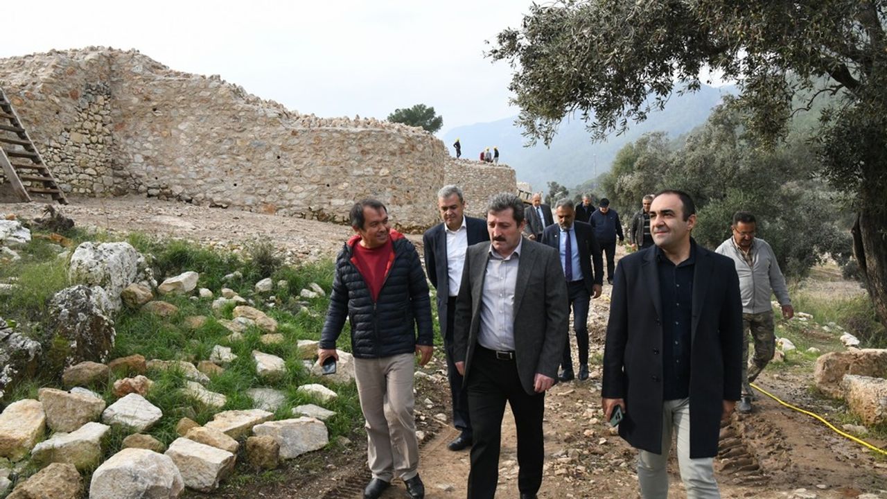 Muğla Valisi Orhan Tavlı yeni kalıntıların bulunduğu Akyaka Orta Çağ Kalesinde incelemelerde bulundu kazı başkanı ve Muğla Sıtkı Koçman Üniversitesi Arkeoloji Bölümü Öğretim Üyesi Prof. Dr. Abdulkadir Baran’dan çalışmalar hakkında bilgi aldı.