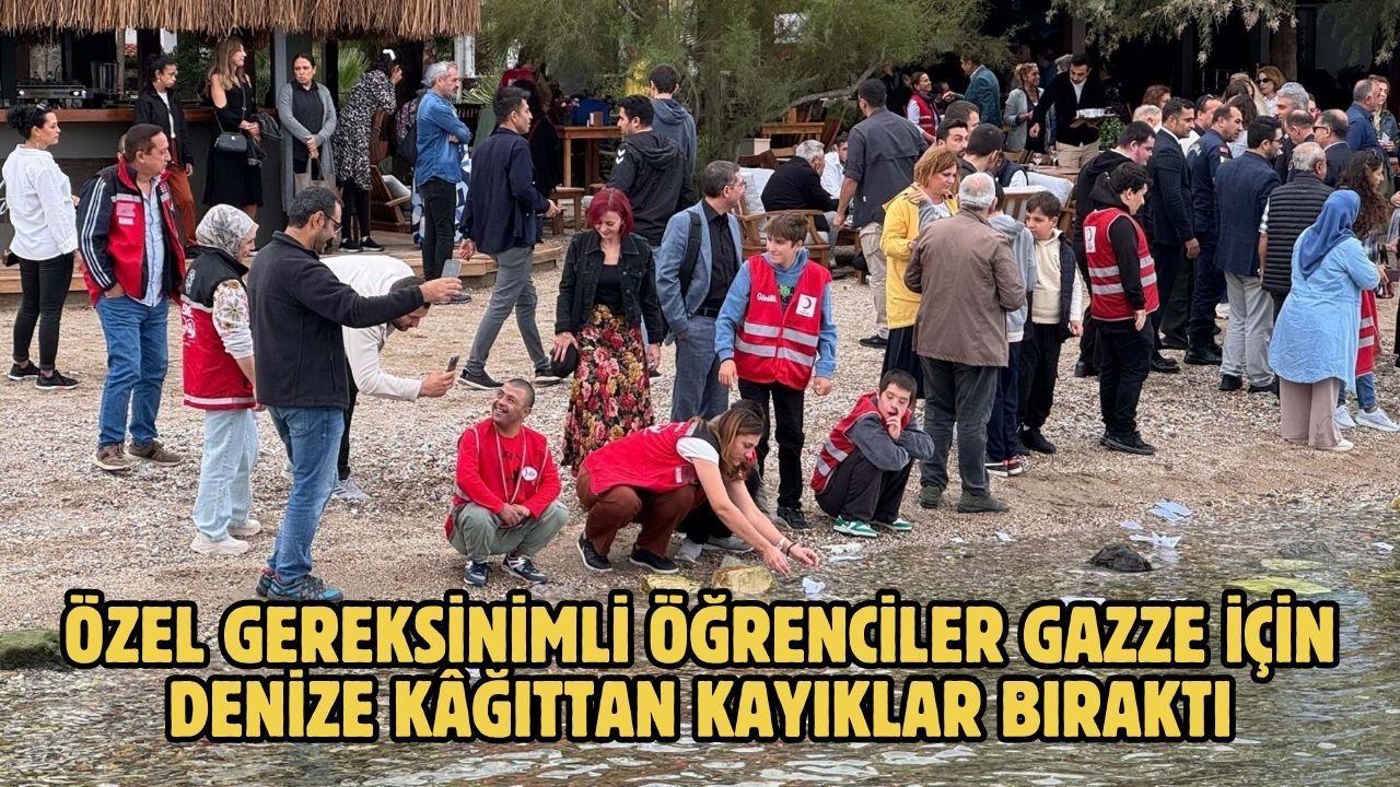Yahşi Özel Eğitim Uygulama Okulu öğrencileri ve Kızılay Bodrum Şubesi Gazze'de yaşananlara dikkat çekmek amacıyla anlamlı bir etkinliğe imza attı. Gölköy'de bir otelin sahilinde düzenlenen etkinlikte özel gereksinimli öğrenciler, protokol ile birlikte 'Gazze' yazılı kağıtlardan kayık yaptı. Hazırlanan kayıklar, öğrenciler, aileleri ve protokol üyelerinin katılımıyla dualar eşliğinde denize bırakıldı. Etkinlikte duygusal anlar yaşandı. Etkinliğe Garnizon Komutanı Personel Albay Ayhan Ulutaş, Bodrum İlçe Jandarma Komutanı Yarbay Kamil İncebacak, Bodrum Belediye Başkan Yardımcısı Kanat Özsert, Bodrum İlçe Milli Eğitim Müdürü Aslan Korkmaz, Bodrum İlçe Gençlik ve Spor Müdürü Oktay Dumruk, Kızılay Bodrum Şube Başkanı Sait Güllüoğlu, idari amirler, sivil toplum kuruluşu temsilcileri, öğretmenler, öğrenciler ve veliler katıldı.