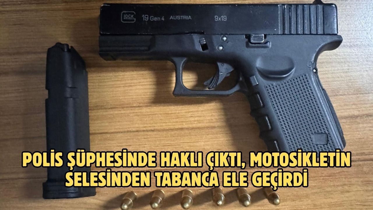 Olay, 8 Kasım 2025 Cumartesi günü saat 23.15 sıralarında Tepe Mahallesi 36 Sokak ile 19 Sokak kesişiminde meydana geldi. Edinilen bilgiye göre, polis ekipleri tarafından suç ve suç unsurlarına yönelik yapılan çalışmalar sırasında ekipler sürücüsünün durumundan şüphelenilen 48 ALG 059 plakalı motosikleti durdurdu. Yapılan kontrolde sürücü D.S. (23) isimli şahsın kullandığı motosikletin selesinde bir adet tabanca ve şarjör kısmında da 6 adet 9 milimetre fişek olduğu belirlendi. Şüpheli D.S. ve ele geçirilen tabanca, gerekli işlemler için Asayiş Büro Amirliği’ne götürüldü.