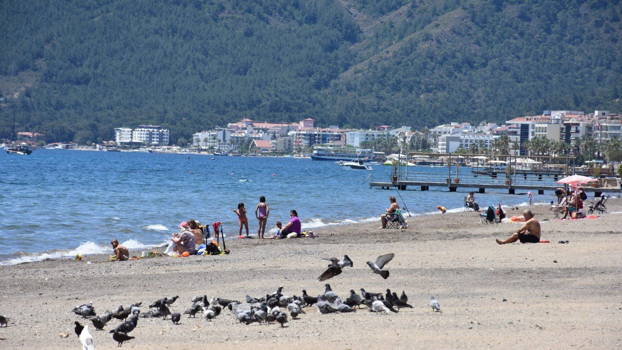 Marmaris'in İçmeler, Uzunyalı sahilleriyle, Marmaris Belediyesi Halk Plajı'na gelen vatandaşlar, denize girip güneşlendi.