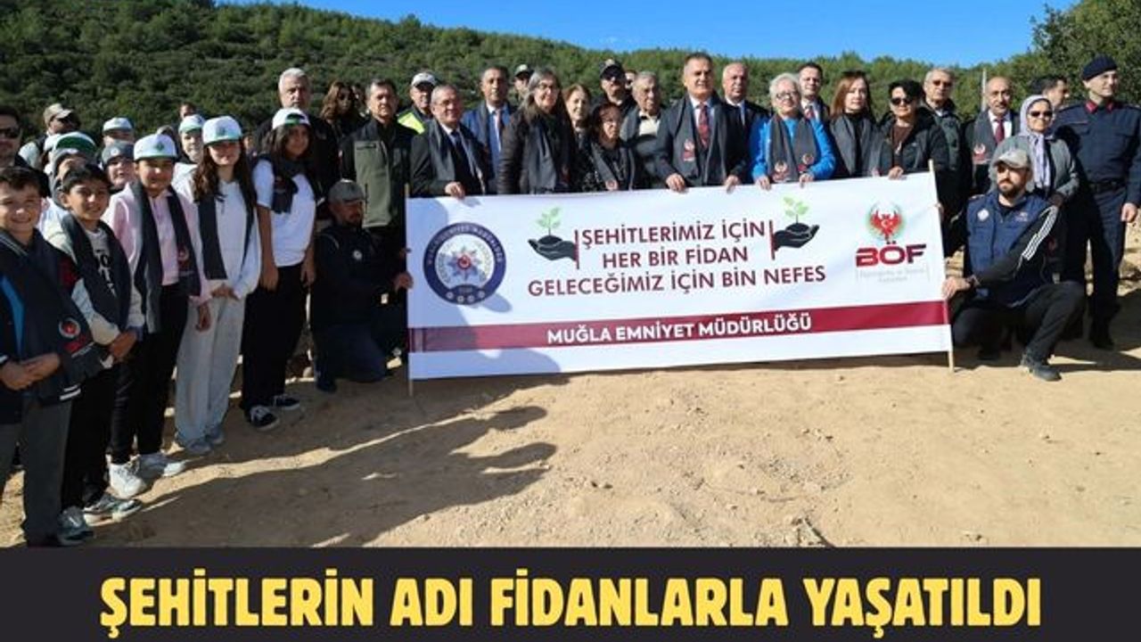 Muğla'da 'Şehitlerimiz için her fidan, geleceğimiz için bin nefes' projesi kapsamında şehitler anısına fidan dikim etkinliği düzenlendi. İl Emniyet ve Orman Bölge Müdürlükleri iş birliğinde Menteşe ilçesindeki dikim alanında düzenlenen programa Muğla Valisi İdris Akbıyık, protokol üyeleri, öğrenciler, şehit aileleri ile emniyet ve orman personeli katıldı.