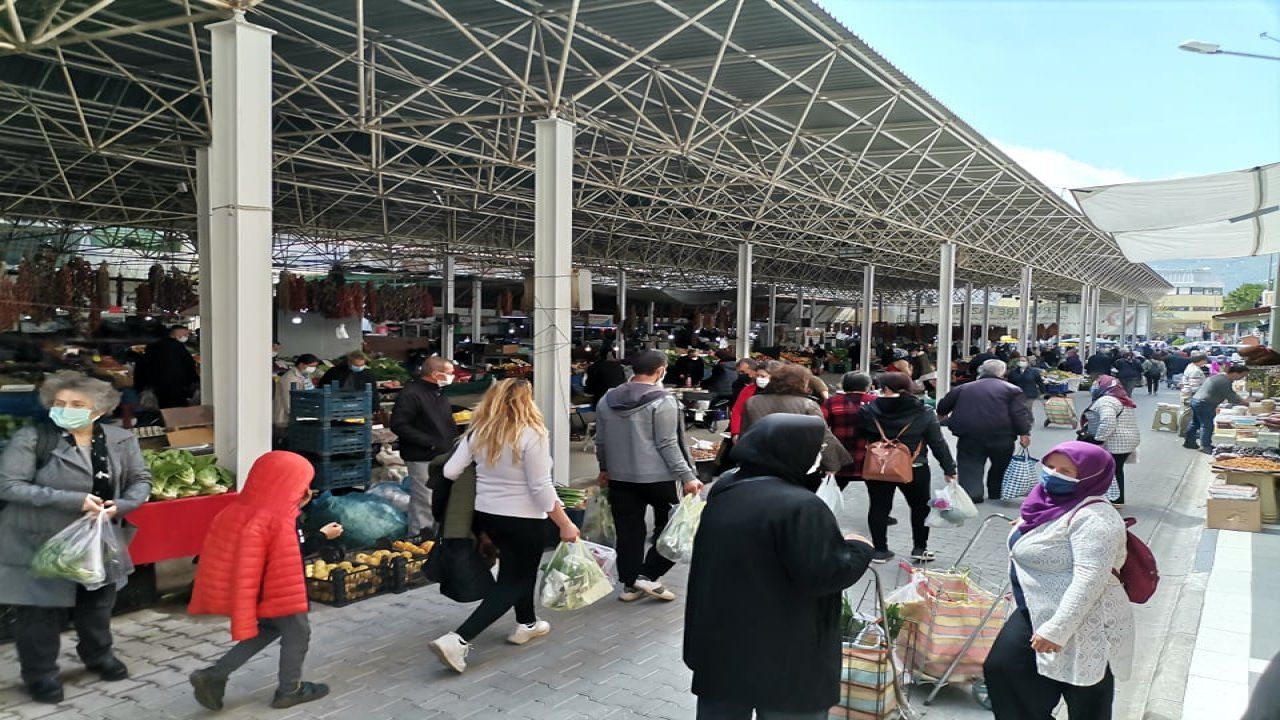 Yüksek riskli iller arasında yer alan Muğla'da vatandaşlar pazara adeta akın etti.