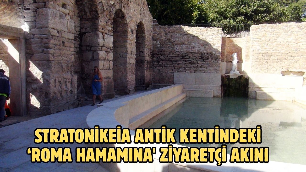 Dünyanın en büyük mermer antik kentlerinden birisi olmasının yanında aşkın ve gladyatörlerin kent olarak da bilinen Stratonikeia antik kentinde en az üç hamam bulunduğu, bu hamamlardan birisinin kadınlara it olduğu tahmin ediliyor. Antik kentin Batı Caddesi girişinden yer alan Roma hamamı yapılan kazı çalışmaları sonrası aslına sadık kalınarak ayağa kaldırıldı. Ziyaretçilerin yoğun ilgi gösterdiği Roma Hamamı antik kenti ziyaret için gelenlerin en fazla ilgi gören bölüm oldu.