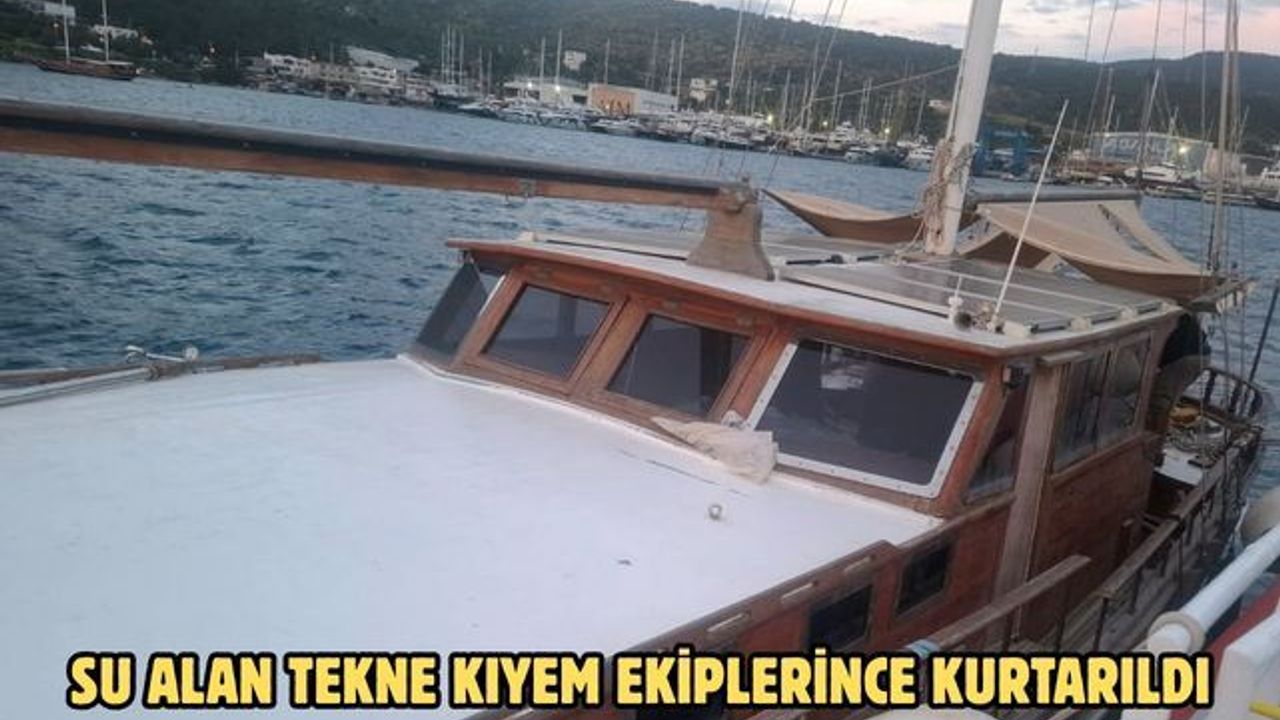 Bodrum Ağanlar Tersanesi önlerinde su alan ve içerisinde 3 kişi bulunan 17 metre boyundaki tekne, KIYEM-6 hızlı tahlisiye (can kurtarma) botu personelince suyu tahliye edilerek Ağanlar Tersanesi'nde emniyete alındı.