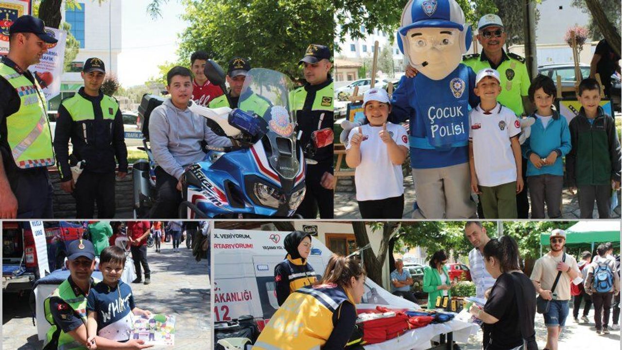 Trafik kurallarına ve yaya geçiş üstünlüğüne dikkat çekilen stantlarda, gerekli araç ve gerekler vatandaşlara tanıtılarak, bilgilendirme yapıldı.