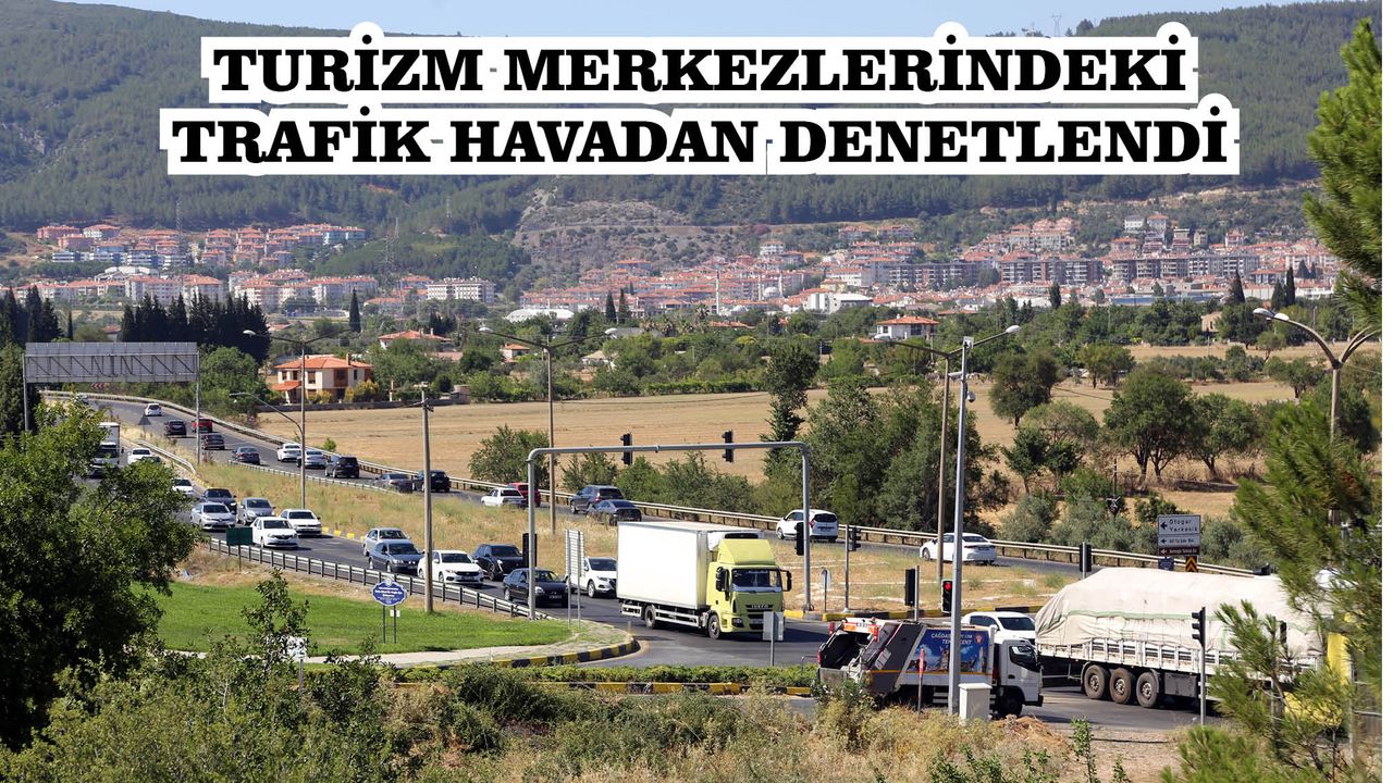 İl Emniyet Müdürlüğü Trafik Denetleme Şubesi ekipleri, Dalaman'dan havalanan Emniyet Genel Müdürlüğü Havacılık Daire Başkanlığına ait polis helikopteriyle bölgedeki trafiği havadan denetledi.
