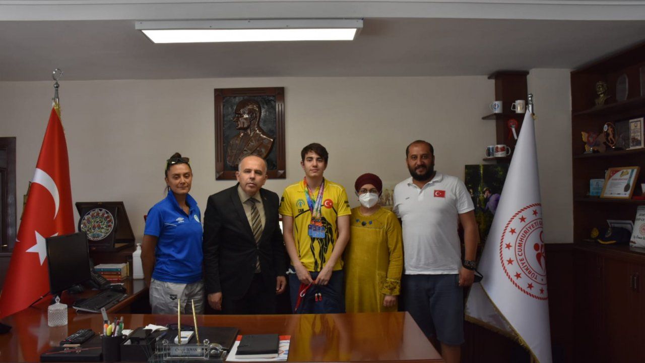 Şampiyon sporcu, annesi Özen Akpınar, antrenörleri Esen Savaş Öznalbant ve Muharrem Öznalbant ile birlikte Muğla Gençlik ve Spor İl Müdürü Ömer İlman’a teşekkür ziyaretinde bulundu.