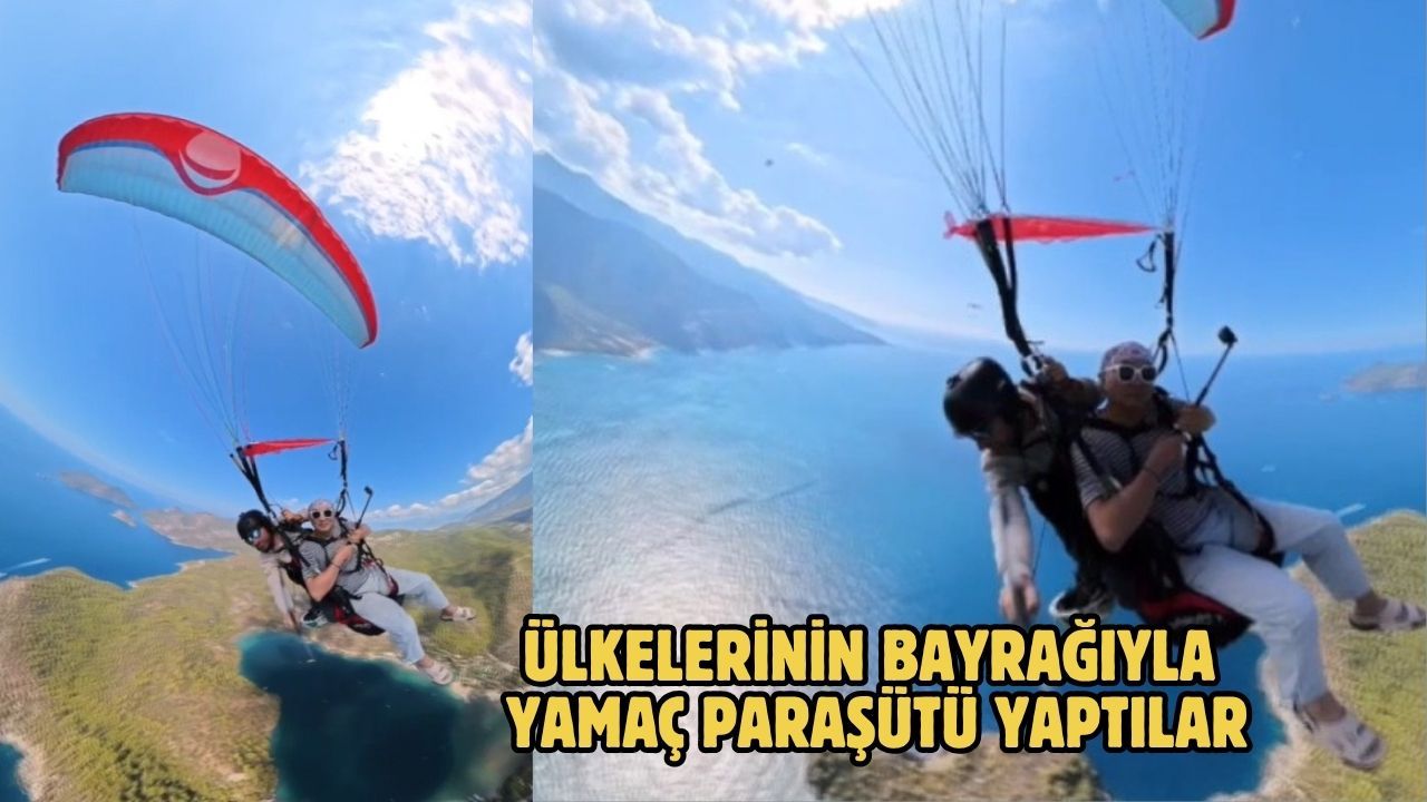 Hazırlıkların ardından yamaç paraşütü pilotlarıyla uçuş yapan turistlerden bazıları, Çin'in kuruluş yıl dönümü dolayısıyla ülkelerinin bayrağını yamaç paraşütüyle dalgalandırdı.