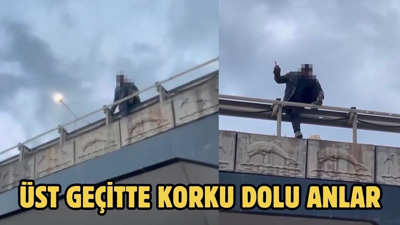 Üst geçidin üzerine çıkan vatandaş, kendisini aşağı atacağını açıkladı.