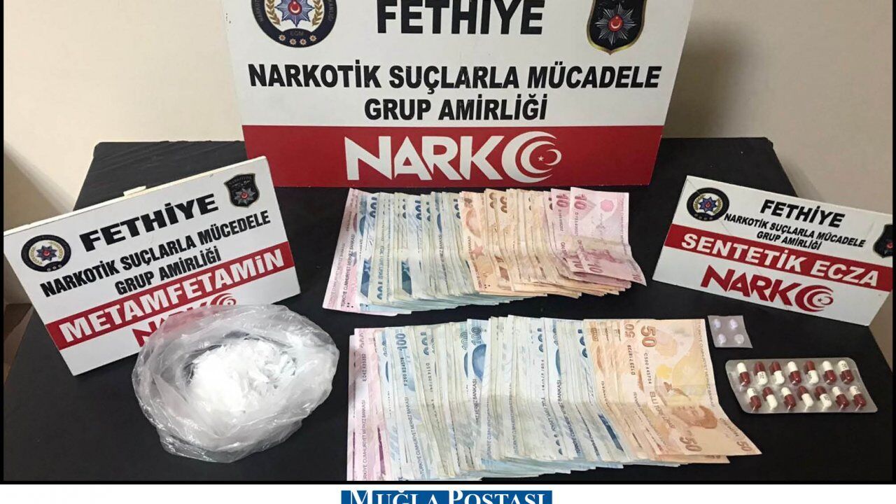 Yapılan aramada; 52,74 g. metamfetamin, 16,25 g. metamfetamin, 0,44 g. metamfetamin, 22 adet sentetik ecza, 1 hassas terazi ve 16 bin TL ele geçirildi.