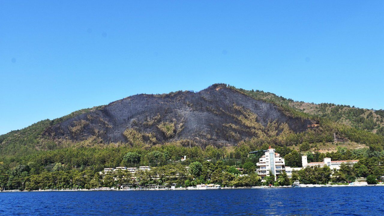 Doğa harikası bölgede adete kara bir leke olarak beliren yanan alan denizden görüntülendi. Denizden bakıldığında alevlerin beş yıldızlı otellerin bulunduğu alana az bir mesafe kala kontrol altına alındığı dikkati çekti.