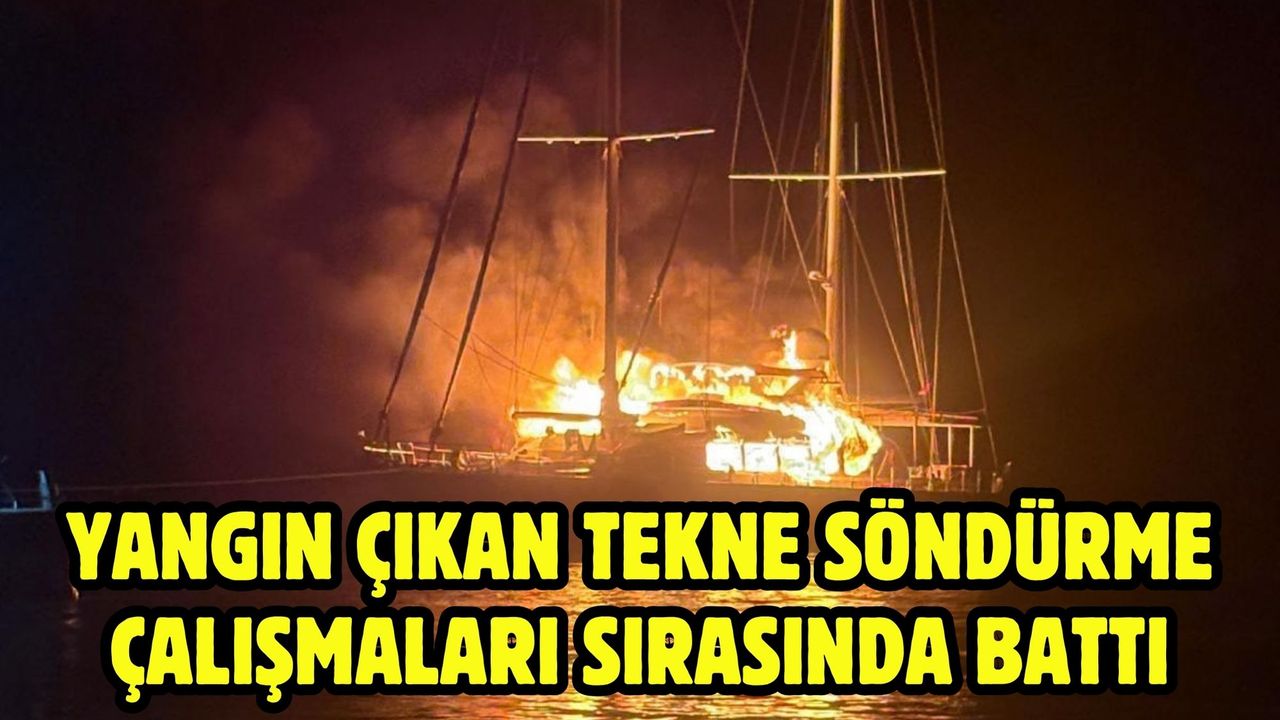 Tekne, ekiplerin söndürme çalışmaları sırasında battı.