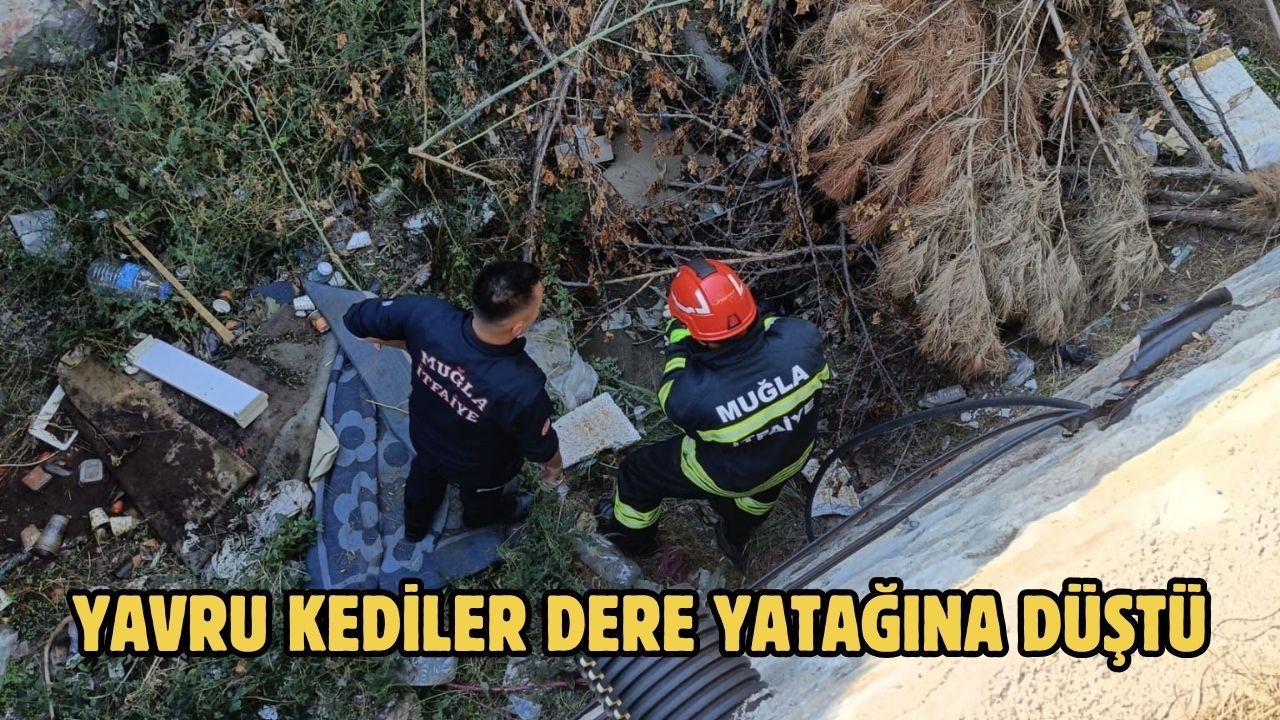 Bölgeye gelen Bodrum İtfaiye Grup Amirliği, düşen kedileri kurtarmak için merdivenle dere yatağına indi. Kedilerden biri yaşamını yitirirken diğer kedi ekiplerce kurtarıldı.