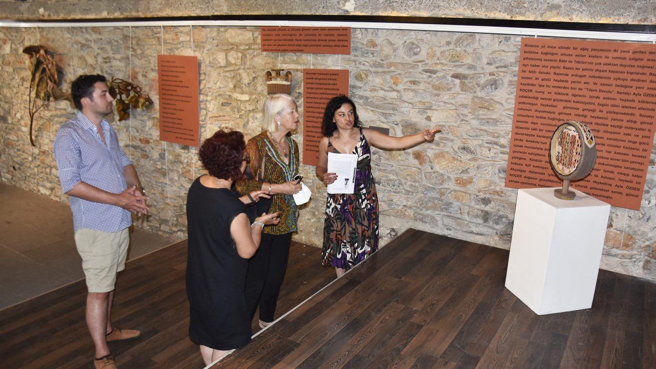 Geleneksel yöntemlerle boyanmış yün, keçe ve farklı ağaç türleri kullanılan eserleri inceleyip bilgi alan Hinton, sergi anı defterini imzaladı.