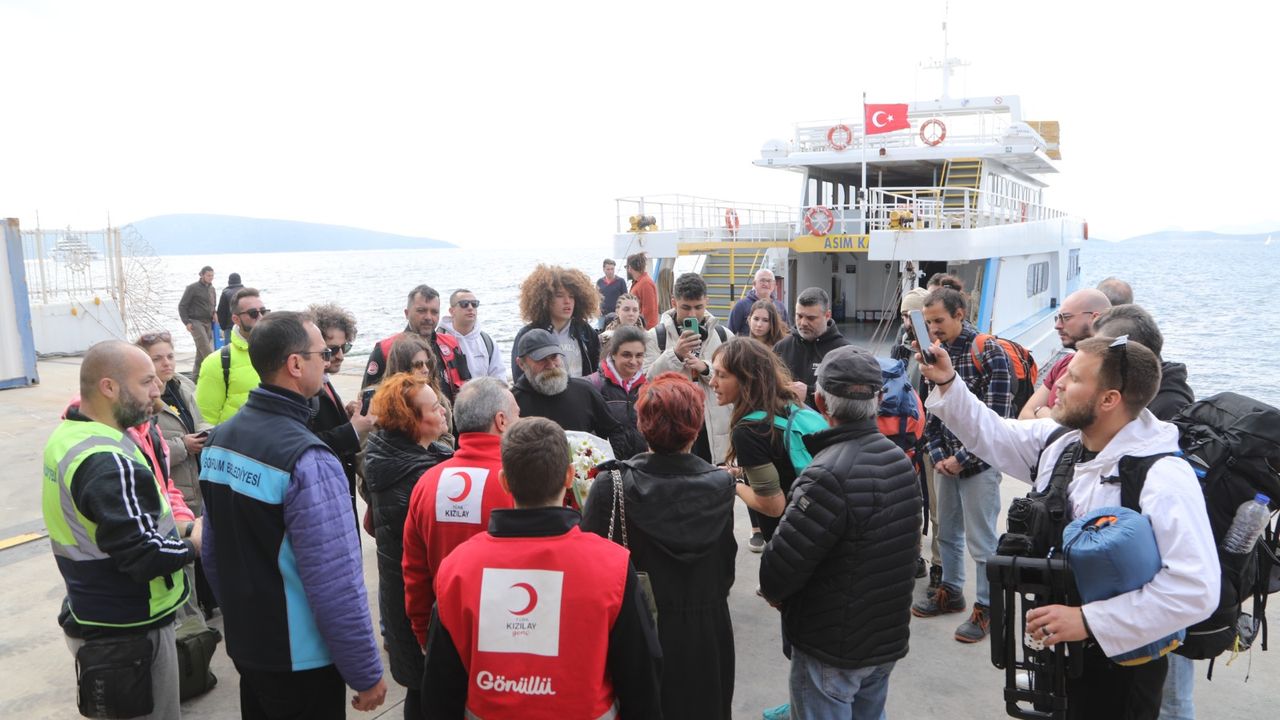 Yunanistan'dan feribot ile Muğla'nın Bodrum ilçesine gelen sosyal dayanışma ekibi, depremzedelere ulaştırılmak üzere yardım malzemesi getirdi.