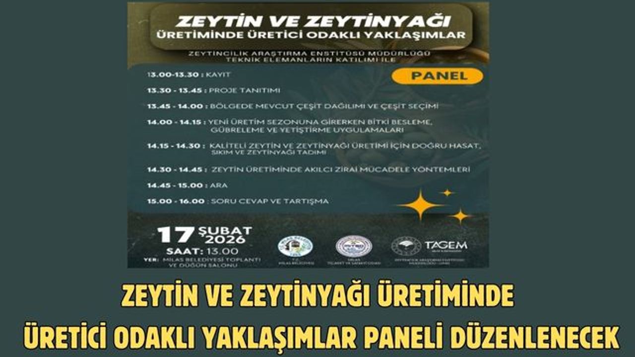 Milas’ta kaliteli zeytin ve zeytinyağı üretimi için yapılması gereken bilimsel uygulamaların anlatılacağı ‘Zeytin ve Zeytinyağı Üretiminde Üretici Odaklı Yaklaşımlar’ paneli Milaslı üreticiler için önemli bir çalışma olarak ön plana çıkıyor.